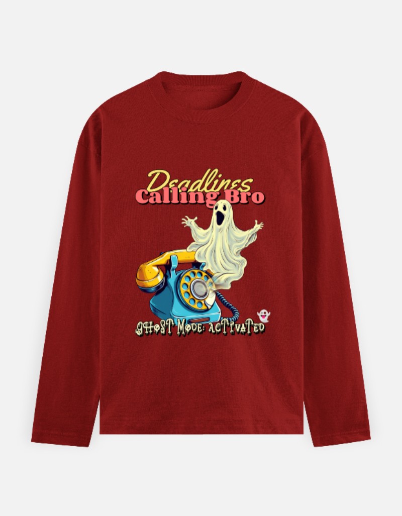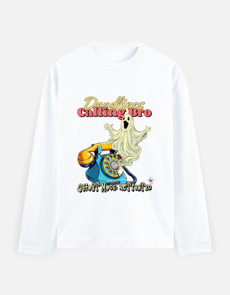 Feeling the pressure of deadlines but still ghosting them like a pro? This “Deadlines Calling, Bro… Ghost Mode: Activated” T-shirt is made for all the champions of procrastination. Whether you’re a student ignoring assignments or a freelancer dodging clients, wear your chill vibes loud and proud.